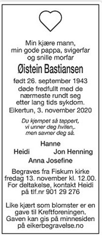 Det er med sorg vi fikk høre at Øystein Bastiansen gikk bort 3. november etter lengre tids sykdom.