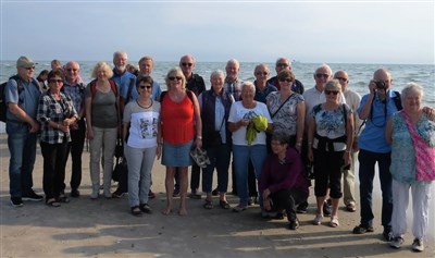 Det var tid for lunsj da bussen satte oss av i sentrum av Skagen. Den største turiststrømmen hadde stilnet og vi vandret rundt og fant oss forskjellige spisesteder. Stekt rødspette er for mange et must i denne byen. Etter lunsj gikk vi ombord i bussen med en lokal guide som viste og fortalte oss en masse omkring byen og det ble en liten vandretur til «Den tilsandete kirke». Dagen ble avrundet med felles festmiddag på hotellet og etter en sein frokost (morgenmad) neste dag, begynte vi på returen til Hirtshals, middag på båten og så kjørt nesten til døra hjemme på Kongsberg. Konklusjonen var selvfølgelig at «alle syntes vi hadde hatt en fin tur» men spesielt komforten med å ha en gjennomgående buss og en sjåfør som passet på at alt gikk etter planen, var noe vi satte pris på og som kan anbefales for seinere turer. Vi sier takk til Øyvinn Andreassen og resten av styret for et utmerket opplegg.
